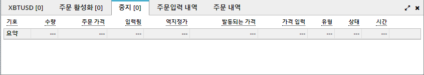주문활성화는 지정가로 거래 요청 했을 때 표현되고 중지는 역지정 시장을 지정했을 때 표시됩니다.